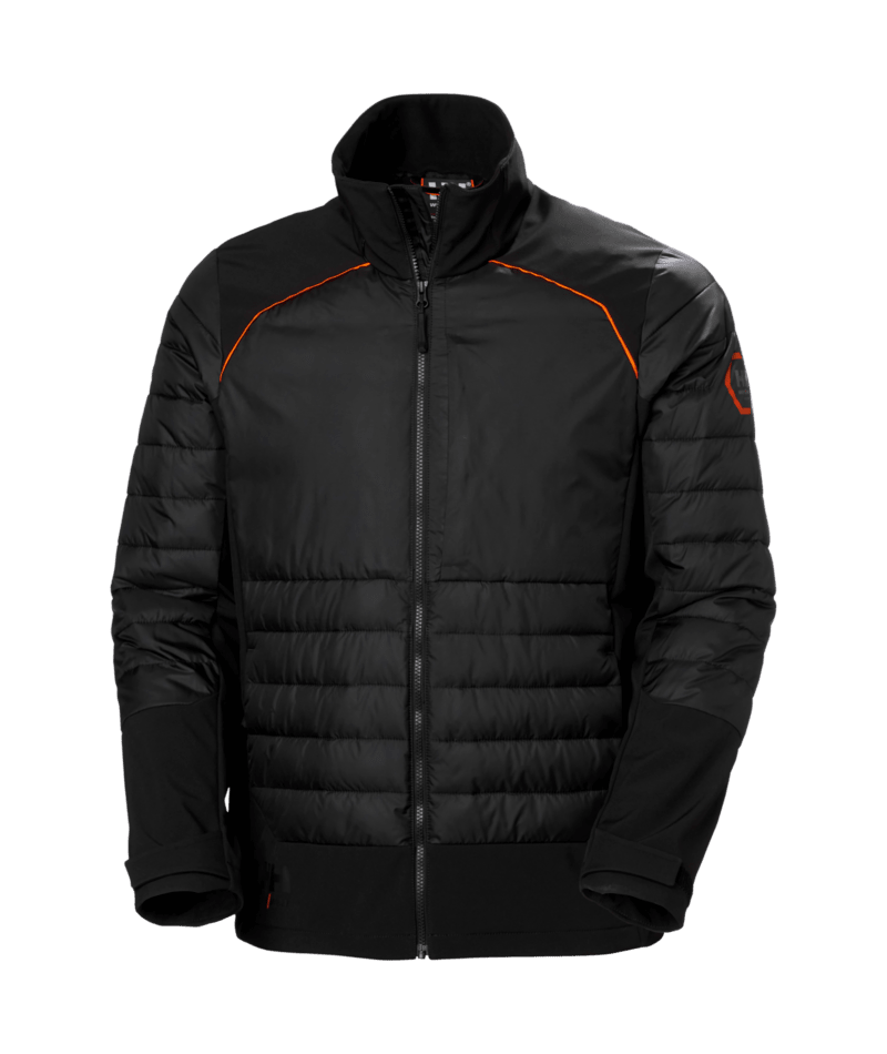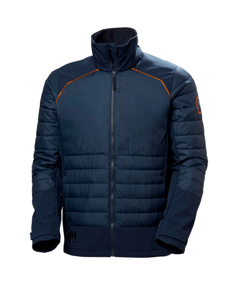 De Helly Hansen Chelsea Evo 2.0 INS Softs Jas houdt je warm zonder bewegingsvrijheid op te offeren. Dankzij de gerecyclede donsachtige isolatie en het softshell-materiaal op strategische zones biedt de jas optimale bescherming tijdens koude werkomstandigheden.De hoge kraag met fleecevoering, voorgevormde mouwen en het naadloze schouderontwerp verhogen het draagcomfort aanzienlijk. De verstelbare manchetten en onderzijde zorgen voor een persoonlijke pasvorm, terwijl het verlengde rugpand extra dekking biedt bij bukken en reiken. Het jack combineert praktisch design met hoogwaardige afwerking zoals YKK®-ritsen, Amann-garen en slimme opbergmogelijkheden aan binnen- en buitenzijde.