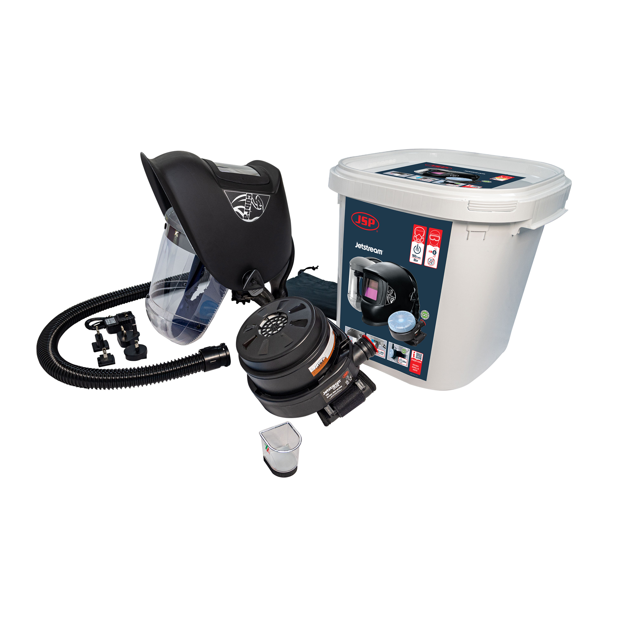 De JSP Jetstream® Dust Welder Kit is een geavanceerd ademhalingssysteem dat bescherming biedt tegen gas, damp en stof dankzij het A2PSL combinatiefilter. Deze uitvoering is voorzien van een Cobra™ welding / grinding head top met shade 9-13 auto darkening filter, waardoor je uitstekend zicht en optimale bescherming hebt tijdens lassen en slijpen.