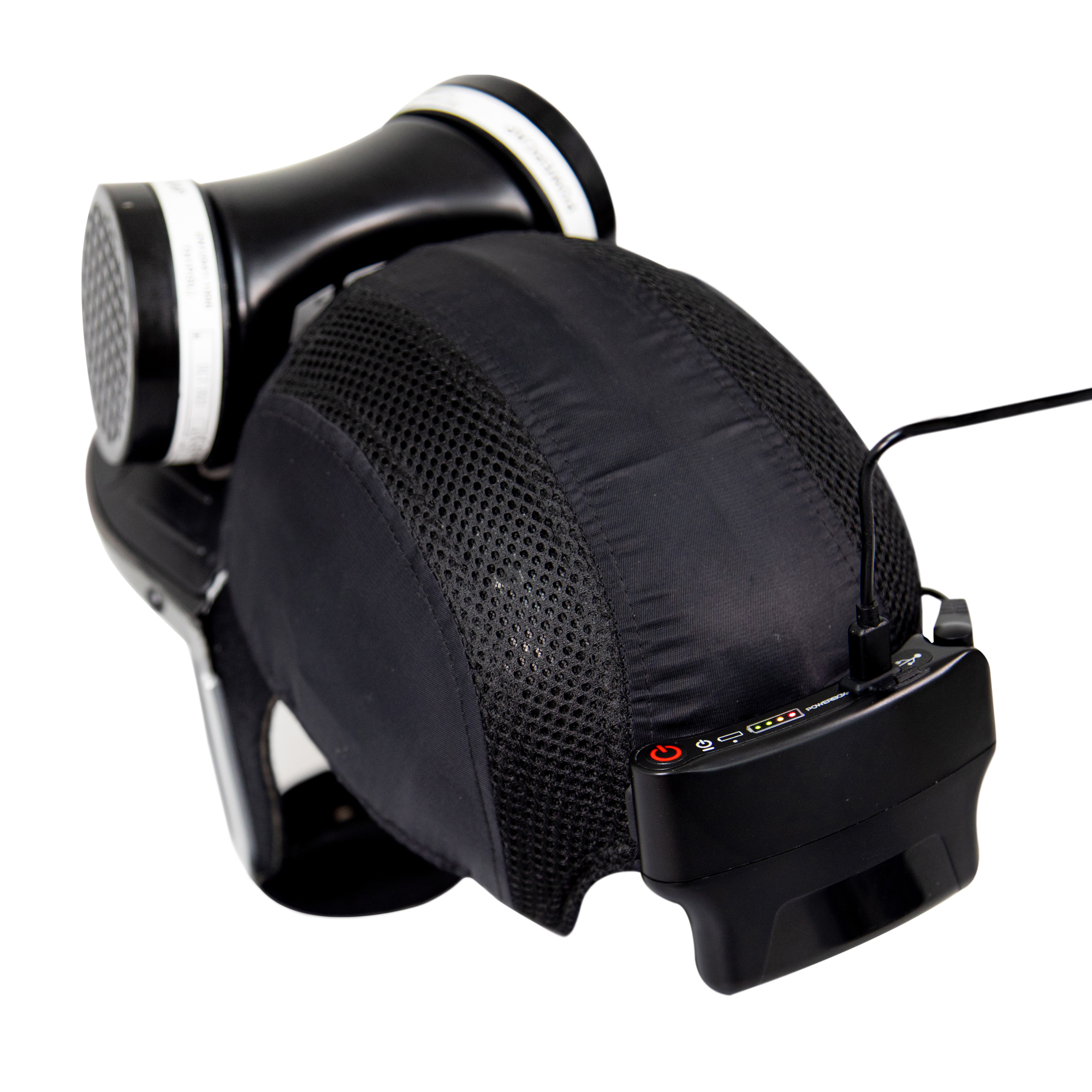 De geïntegreerde ventilator zorgt voor een constante toevoer van gefilterde lucht, wat ademweerstand vermindert en condensvorming in het vizier voorkomt. Dankzij het ergonomische ontwerp zit de Powercap comfortabel en stevig, zelfs bij langdurig dragen.
